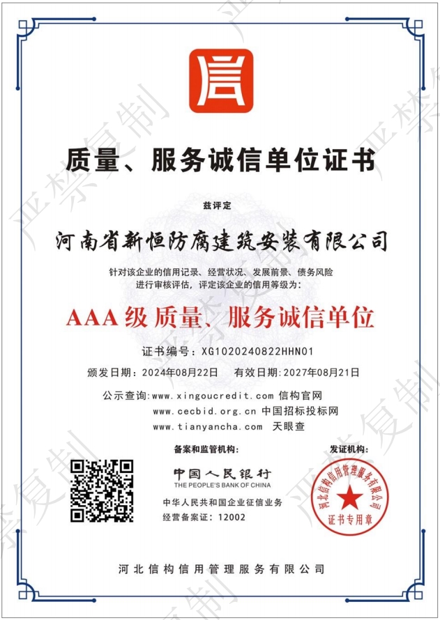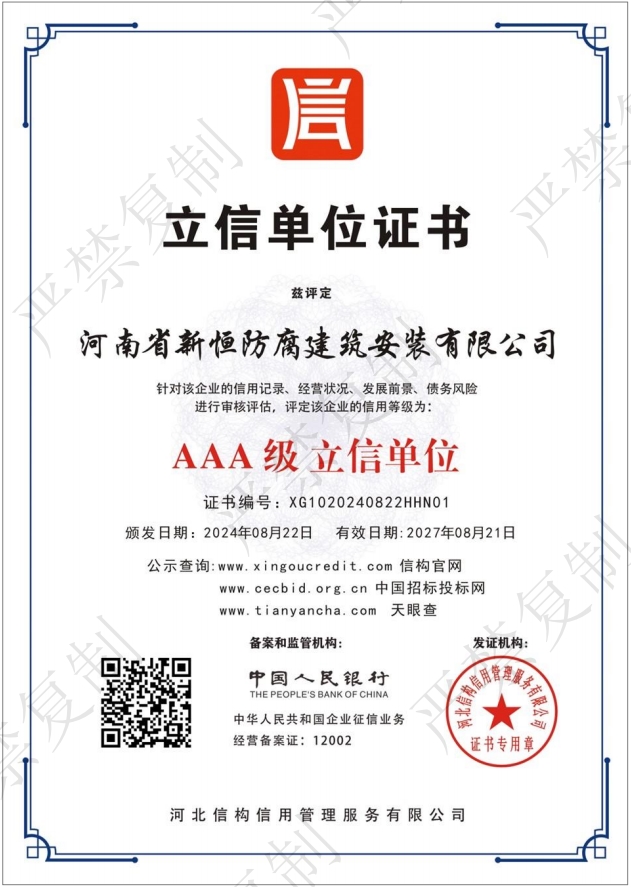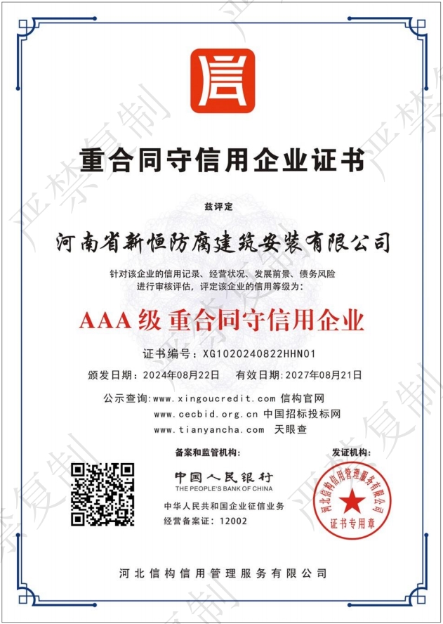 版權(quán)所有 河南省新恒防腐建筑安裝有限公司 備案號(hào):豫ICP備2020025126號(hào)-1