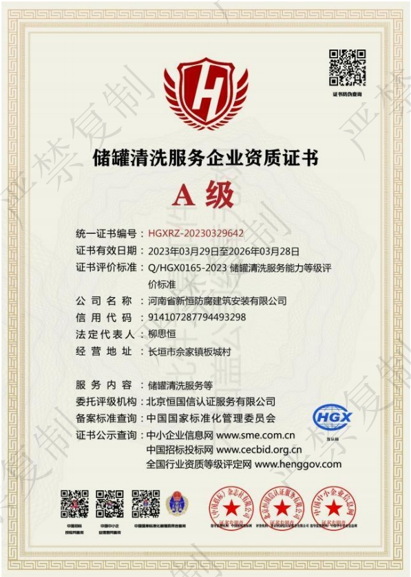 儲(chǔ)罐清洗服務(wù)企業(yè)資質(zhì)證書