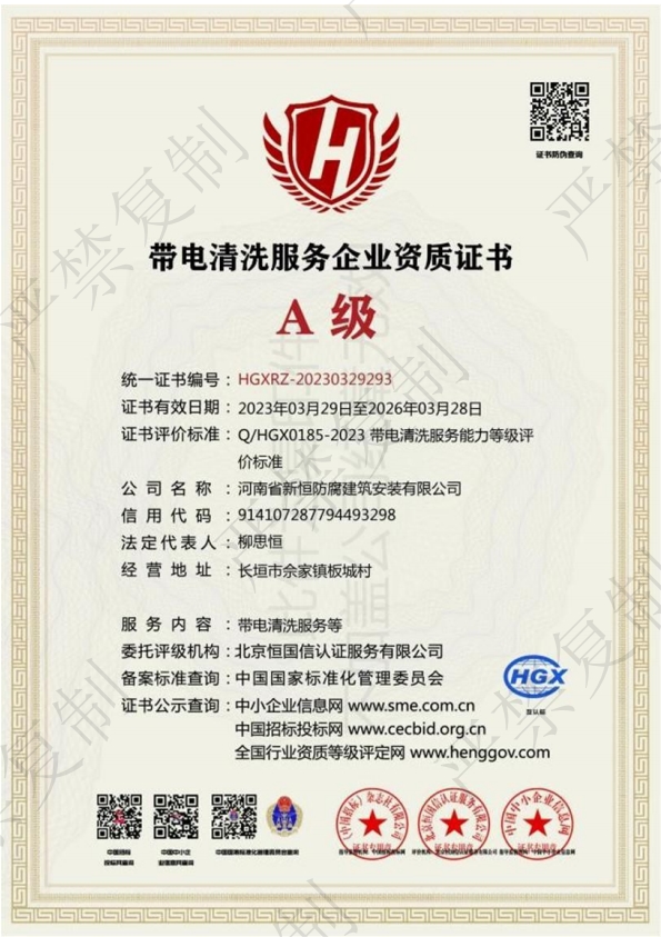 帶電清洗服務(wù)企業(yè)資質(zhì)證書